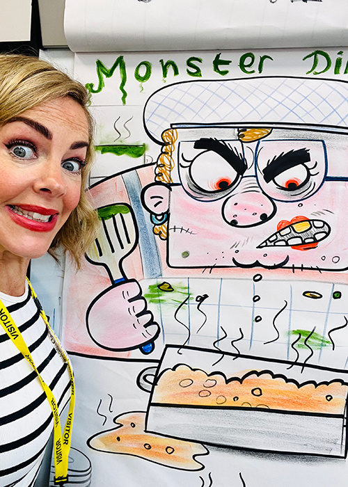 They have the audience roaring with laughter with their witty banter and competitive natures. The audience is ALWAYS encouraged to take part in the poems and the drawing